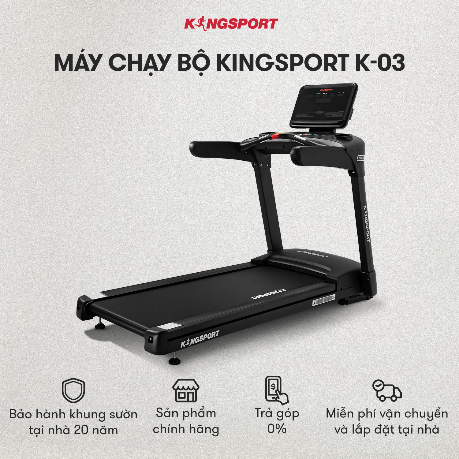 Máy Chạy Bộ KingSport KS-2055 Đa Năng - Chạy Bộ Thả Ga, Cả Nhà Cùng Khỏe ️ Thiết kế sang trọng và hiện đại phù hợp với mọi không gian ️ Khung sườn Kingtech Titan 2.0