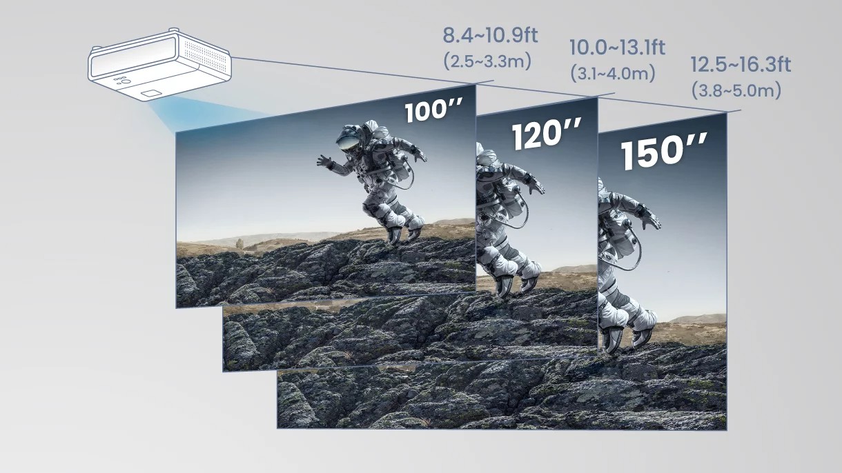 Khả năng thu phóng 1,3x giúp bạn tối ưu hóa không gian chiếu hình. Dù phòng bạn có kích thước lớn hay nhỏ, bạn vẫn có thể tạo ra một rạp chiếu phim tại nhà với màn hình kích thước lý tưởng. Không còn lo lắng về việc lắp đặt phức tạp, chỉ cần điều chỉnh ống kính và tận hưởng những giây phút giải trí tuyệt vời.