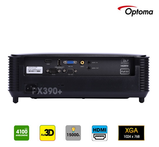 Máy chiếu OPTOMA PX390+ sử dụng bóng đèn công suất 203W, với tuổi thọ lên đến 15.000 giờ (chế độ Eco). Bên cạnh độ sáng cao, OPTOMA PX390+ còn có độ phân giải chuẩn XGA (1024×768), phù hợp cho màn chiếu có kích thước từ 100" đến 150". Độ tương phản 32.000:1 tạo ra hình ảnh sắc nét, với độ sâu và màu sắc trung thực.