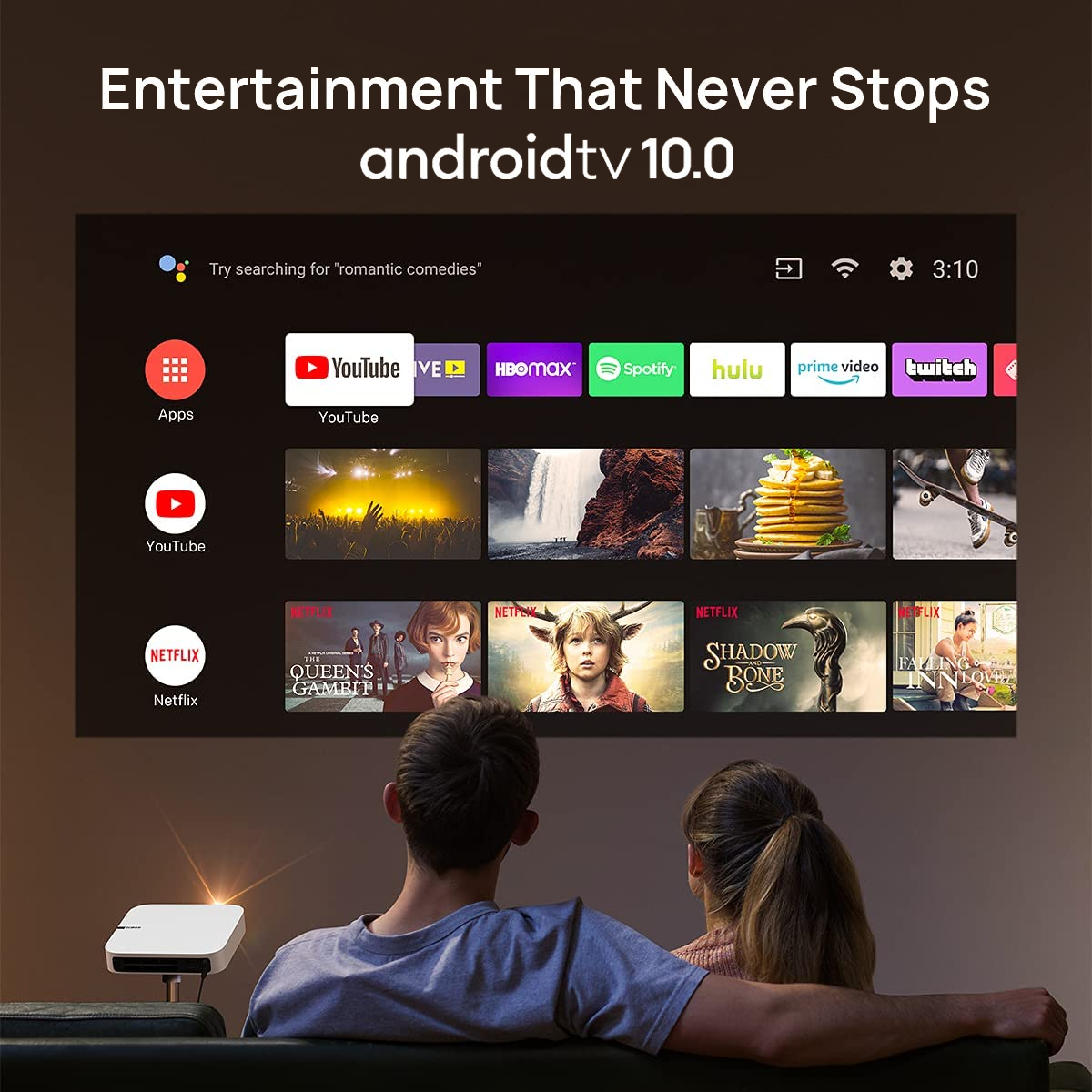 * Thông tin sản phẩm: Loại máy: Máy chiếu, tối đa 200 inch Hệ điều hành: Android 9.0 Độ sáng (Lumen ANSi): 650 lumens Độ tương phản: NTSC, HDR10+ Công nghệ hình ảnh: Máy quang