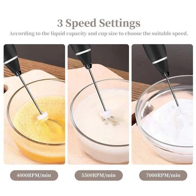 Máy tạo bọt cafe máy đánh trứng mini cầm tay sạc USB 3 tốc độ sử dụng pin sạc cao cấp