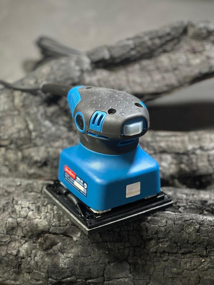 Máy sở hữu công suất hoạt động là 240W, thiết kế mặt đế dạng hình vuông . Máy chà nhám sử dụng nguồn điện áp 220V, tốc độ không tải đạt 14.000 vòng/phút giúp chà nhám gỗ nhanh hơn. Máy có tích hợp công tắc tắt/bật đơn giản dễ sử dụng
