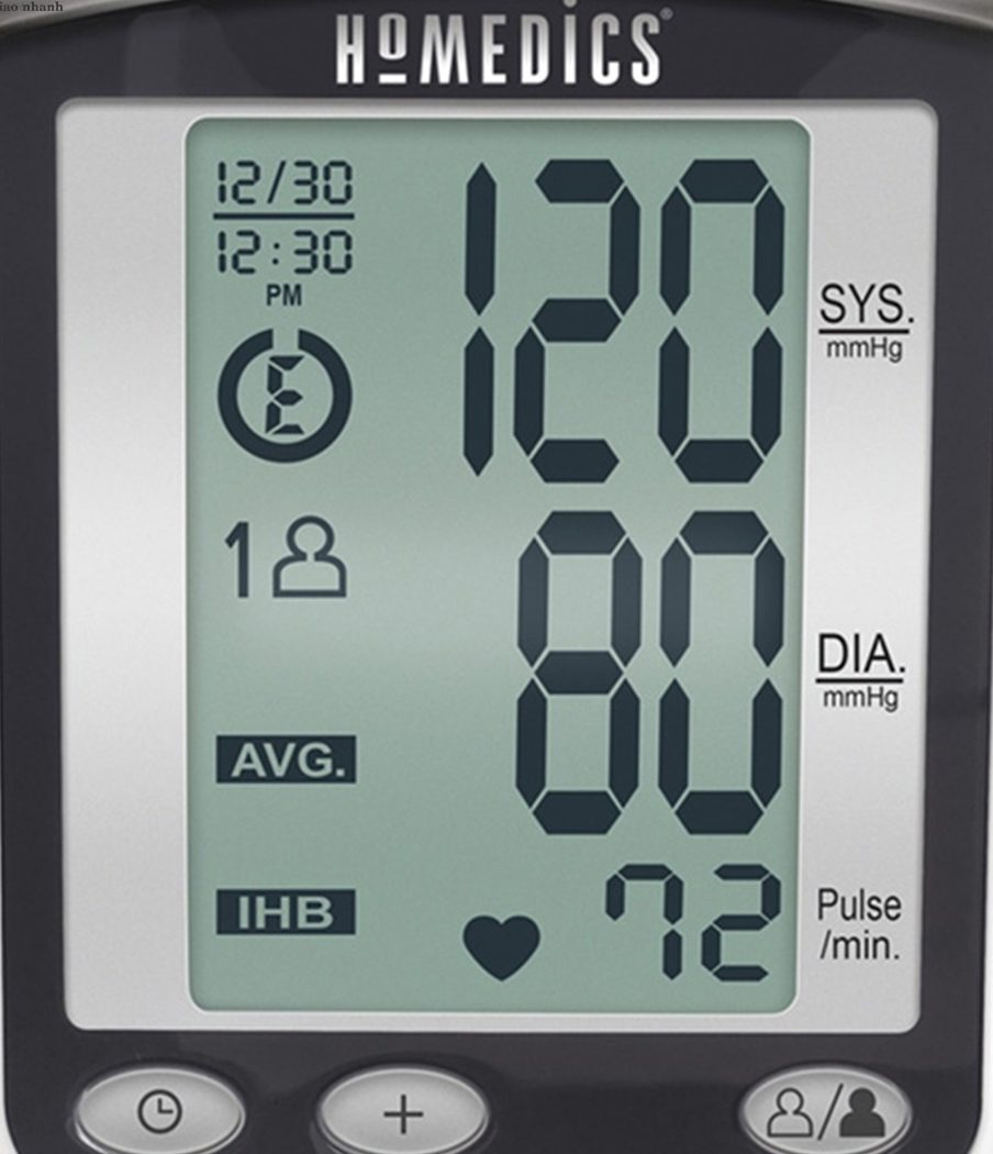 Màn hình LCD lớn hiển thị rất rõ kết quả Giới hạn đo: Huyết áp: 0 tới 299 mm Hg Nhịp tim: 40 tới 180 nhịp/phút Độ chính xác: Huyết áp: ±3 mm Hg Nhịp