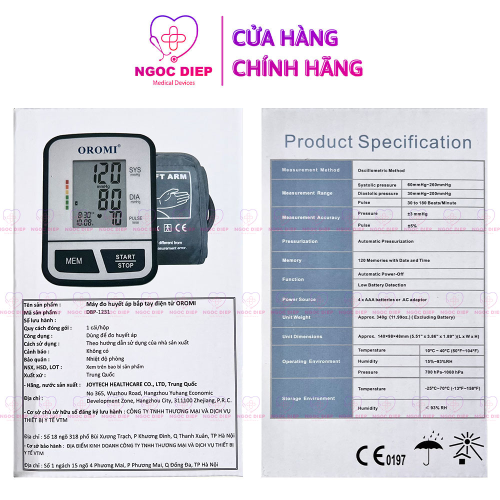 Máy Đo Huyết Áp Điện Tử Bắp Tay OROMI DBP-1305 Có Giọng Nói Tiếng Việt