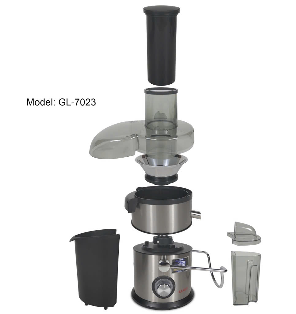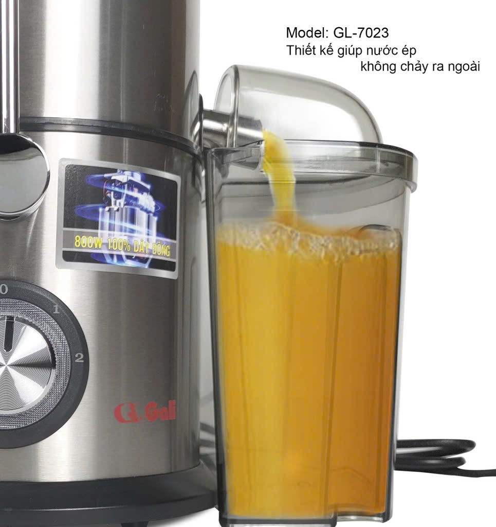 - Máy ép trái cây GL-7023 kiểu dáng hiện đại phù hợp mọi gia đình, điểm kinh doanh. Máy có thể tạo ly nước ép chỉ trong vài giây, ít bị tắc, ít tạo bọt, giữ được tinh chất của các loại trái cây.