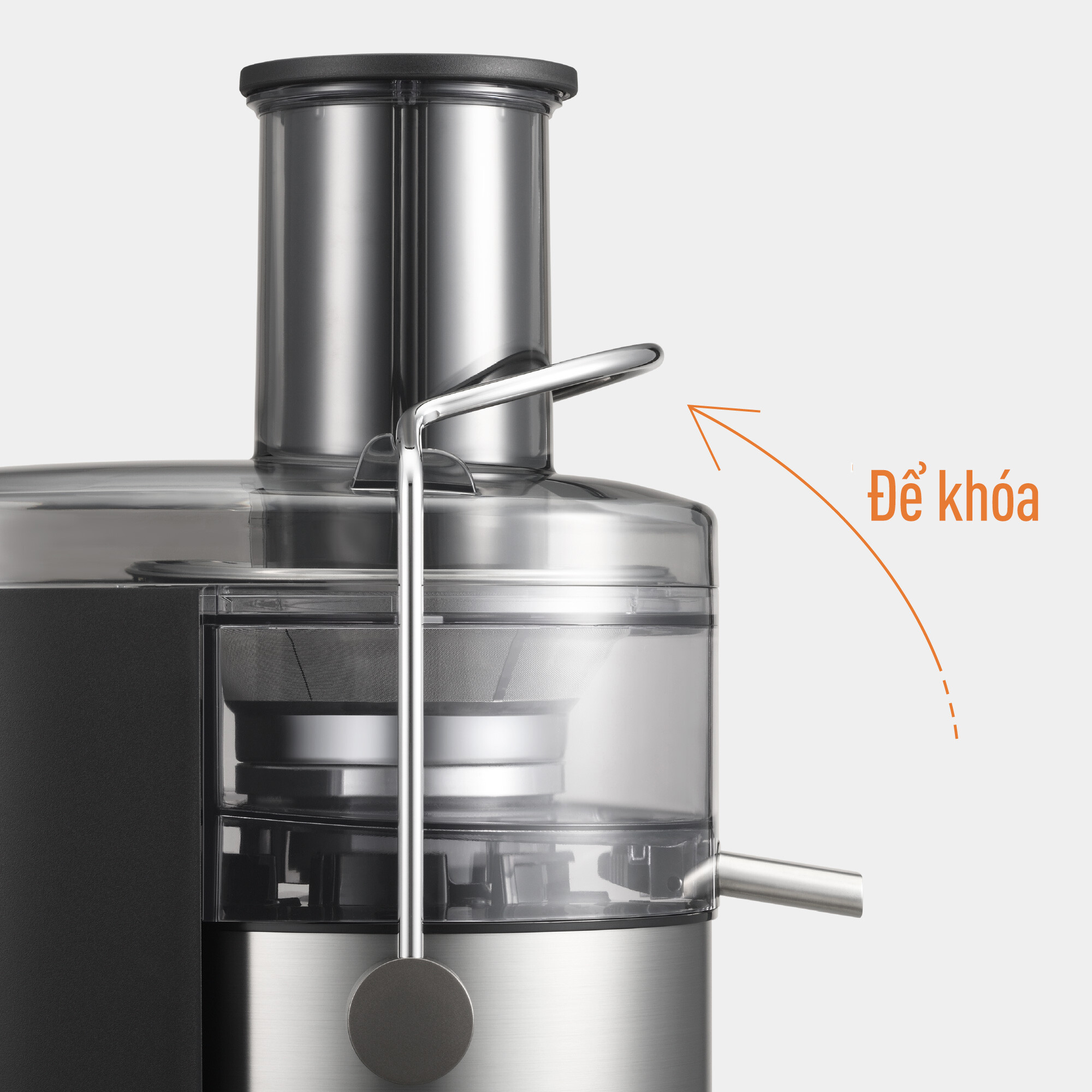 - Điều khiển máy ép bằng nút xoay đơn giản, dễ dàng thao tác kể cả với người lớn tuổi. Ống tiếp nguyên liệu Máy ép có đường kính ống tiếp nguyên liệu lớn 75 mm dễ dàng cho trái cây nguyên trái cỡ vừa (táo, cà chua,) vào mà không cần cắt nhỏ. Vòi nước ép Thiết kế vòi chống nhỏ giọt, khi tháo cốc chứa nước ép cần kéo vòi rót lên để ngăn nước ép rò rỉ ra ngoài, giữ cho khu vực xung quanh sạch sẽ. Chất liệu - Thiết kế