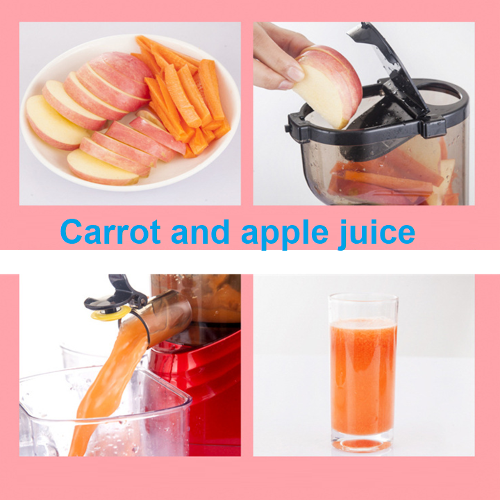 - Các thử nghiệm cho thấy lượng nước ép từ máy ép trái cây tốc độ thấp nhiều hơn 1,5 lần so với máy ép trái cây thông thường. Máy có thể ép được các loại rau, củ, quả như cà rốt, các loại rau, cỏ lúa mì…(Lưu ý khi ép các loại rau nhiều chất sơ, cần thái nhỏ sắt miếng 0,5 cm trước khi cho vào máy) Nước ép mang hương vị tự nhiên