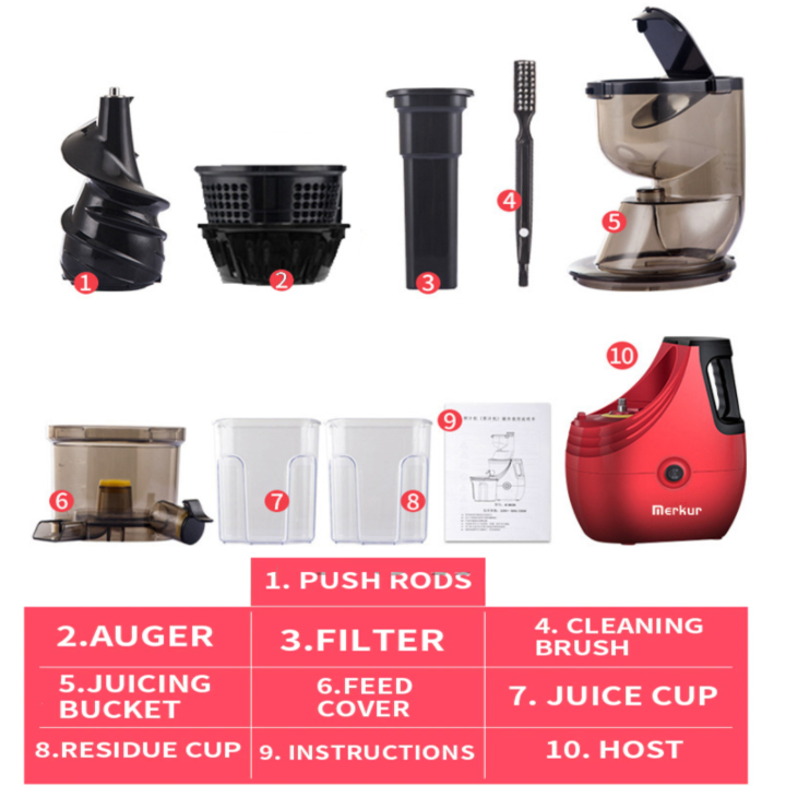 Máy Ép Chậm Thương Hiệu Cao Cấp Merkur JE-B02B (150W) - Hàng Nhập Khẩu Máy ép chậm Merkur là lựa chọn tối ưu để có được những ly nước ép thơm ngon, bổ dưỡng mỗi