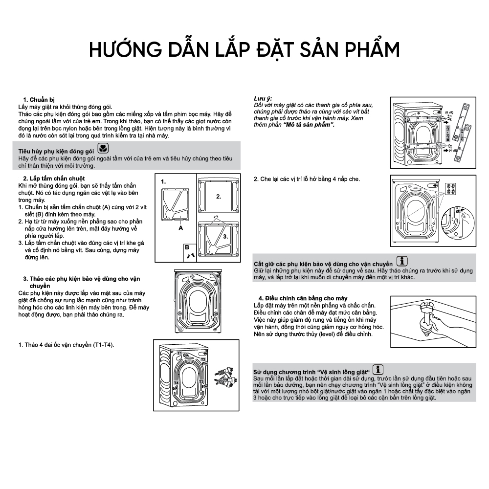 Mua tại Tiktok• Máy giặt sấy cửa trước lồng ngang • 16 chương trình giặt tự động tích hợp (Cotton ECO, Sport Wear, Quick, Delicate, Wool, Colors, Jeans, Spin Only, Rinse&Spin, Dry Only, Mix, Baby Care, Synthetic,