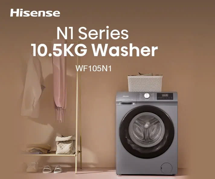 Máy giặt Hisense Inverter 10.5 kg WFQA1043BT – Giặt Sạch Thông Minh, Tiết Kiệm Năng Lượng
