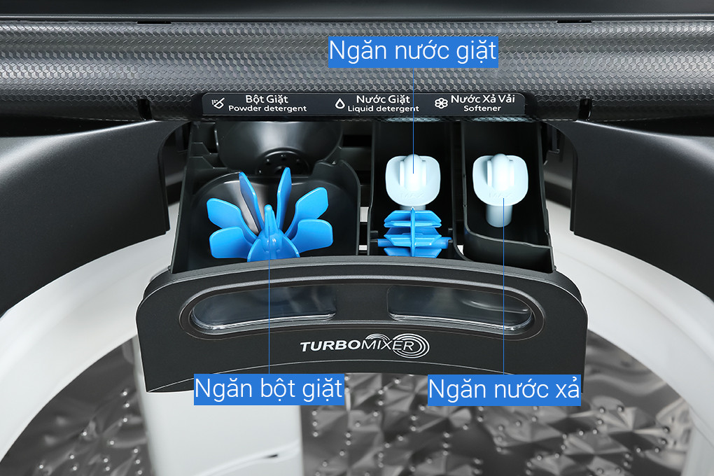 Đặc điểm nổi bật Tự động phân bổ nước giặt xả chính xác theo khối lượng đồ giúp tiết kiệm chất tẩy Ngăn chứa nước giặt xả lớn, chỉ cần đổ đầy 1 lần có