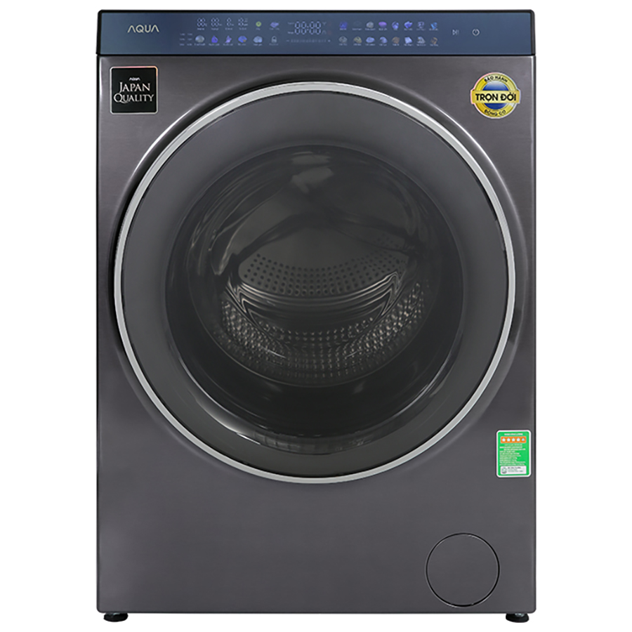 - ĐƯỢC KHUI THÙNG KIỂM TRA sản phẩm trước khi thanh toán/ký nhận Máy giặt sấy tiện lợi Aqua Inverter 15 Kg AQD-DH1500G PP bên cạnh khối lượng giặt lớn 15 kg, máy còn tích hợp chức năng sấy quần áo với khối lượng sấy lên đến 10 kg. Phù hợp cho các gia đình bận rộn, hay vào những hôm thời tiết thất thường không có nhiều thời gian phơi khô đồ, sử dụng trên 1 máy, tiết kiệm diện tích lắp đặt. Công nghệ sấy ngưng tụ sẽ giúp bạn linh hoạt lắp đặt ở nhiều vị trí khác nhau trong nhà mà không cần phải lắp đặt ống thông hơi như một số loại máy sấy khác. Tổng quan thiết kế Kiểu dáng: máy giặt cửa trước - lồng ngang thiết kế hiện đại, chắc chắn, tông màu xám trung tính, tô điểm cho không gian sử dụng của bạn thêm phần sang trọng, thanh lịch. Bảng điều khiển cảm ứng tiếng Việt thân thiện, có màn hình hiển thị rõ ràng, các biểu tượng màu sắc sinh động, dễ hiểu, dễ phân biệt, cho bạn tùy chọn các chức năng dễ dàng, chính xác. Nắp máy giặt: chất liệu nhựa ABS và kính dày bền, đảm bảo an toàn cho người dùng, bảo vệ bạn khỏi các nguy cơ bị bỏng, nóng khi vô tình chạm vào nắp máy khi thiết bị đang hoạt động ở chương trình giặt thiết lập nhiệt độ cao. Chế tác đóng mở đơn giản, cho bạn đặt và lấy quần áo ra khỏi lồng giặt nhẹ nhàng. Lồng giặt lớn 601 mm tạo ra không gian rơi thả rộng để quần áo va đập mạnh, đánh bay các chất bẩn, bụi dễ dàng, quần áo xoay trở tiện lợi, hạn chế xoắn rối. Hơn nữa, lồng giặt Pillow được làm từ vật liệu thép không gỉ bền chắc, chống oxy hóa, thiết kế bề mặt dạng hình gối, khoét các lỗ cực nhỏ cỡ 2.5 mm giúp tăng hiệu quả giặt, giảm tình trạng xơ vải dính vào lồng giặt, bảo vệ chất liệu quần áo tốt hơn. Khối lượng giặt và chương trình giặt Khối lượng giặt tối đa: 15 kg, sấy 10 kg, phục vụ tốt cho nhu cầu giặt giũ của các gia đình có trên 7 thành viên hoặc gia đình, nhóm bạn có ít thành viên hơn nhưng có tần suất giặt cao, thói quen gom đồ để giặt trong 1 lần/tuần để tiết kiệm điện, nước và công sức hơn. Máy giặt Aqua có 16 chương trình giặt được cài đặt sẵn: giặt AI, giặt nhanh, giặt UV, vải cao cấp, vải lông, giặt siêu sạch, (xem thêm tại bảng thông số kỹ thuật). Trong đó, chương trình giặt Al tự động xác định khối lượng giặt, phân bổ lượng nước giặt/xả, phân biệt chất liệu vải qua khả năng hấp thụ nước giúp giặt quần áo sạch sâu, kéo dài độ bền vải và tối ưu chi phí giặt. Công nghệ giặt đặc biệt Smart Dosing, công nghệ này có khả năng tự động cân chỉnh một lượng nước giặt/xả tương thích với khối lượng đồ đã bỏ vào lồng giặt. Nhờ đó, giúp bạn giặt quần áo thuận tiện, không cần châm nước giặt, nước xả thường xuyên, tránh lãng phí điện, nước. Công nghệ diệt khuẩn bằng tia UV giúp loại bỏ vi khuẩn bám trên mặt vải cho quần áo sạch sẽ, đảm bảo an toàn cho làn da nhạy cảm của bạn hơn. Vòng đệm cửa kháng khuẩn ABT lắp đặt ở khe cửa máy giặt, giúp giảm tình trạng vi khuẩn, nấm mốc sinh sôi, phát triển, giữ cho khu vực giặt của thiết bị sạch sẽ, hạn chế vi khuẩn bám vào quần áo, đồ dùng của bạn. Smart Dual Spray có rửa sạch hết các xơ vải còn sót lại ở vị trí vòng đệm, mặt trong cửa sau mỗi lần giặt giũ, ngăn xơ vải bám vào trang phục của bạn vào những lần giặt tiếp theo, rửa sạch xà phòng, chất bẩn ở cửa máy để tăng hiệu quả làm sạch quần áo. Động cơ - Công nghệ tiết kiệm điện Kiểu động cơ: truyền động trực tiếp kết hợp công nghệ DD Inverter, tốc độ quay vắt tối đa 1400 vòng/phút đem đến hiệu suất hoạt động bền bỉ, êm ái, tiết kiệm điện năng, giảm thiểu đáng kể tiếng ồn kể cả khi giặt vào ban đêm cũng không làm ảnh hưởng đến giấc ngủ của các thành viên trong gia đình. Có nhãn năng lượng tiêu chuẩn 5 sao, hiệu suất sử dụng điện là 11.3 Wh/kg. Tiện ích khác Hẹn giờ giặt: tính năng này cho phép bạn tùy chọn các mốc thời gian giặt đồ dễ dàng, đảm bảo quần áo sạch luôn sẵn sàng vào thời điểm bạn cần. Khóa trẻ em: khi khởi động khóa trẻ em, bảng điều khiển, cửa máy sẽ bị vô hiệu hóa trừ nút "Nguồn" để tránh trẻ đùa nghịch với bàn phím, thay đổi các cài đặt trước đó. Để thiết lập chức năng này, bạn chạm và giữ phím "Khoá trẻ em" trên màn hình 3 giây đến khi biểu tượng sáng đèn, để huỷ bạn thực hiện thao tác tương tự. Đèn chiếu sáng lồng giặt: bên trong lồng giặt có đèn giúp chiếu sáng rõ ràng để bạn dễ dàng nhận biết vị trí quần áo và lấy chúng nhanh hơn, không phải tốn thời gian để dò tìm.