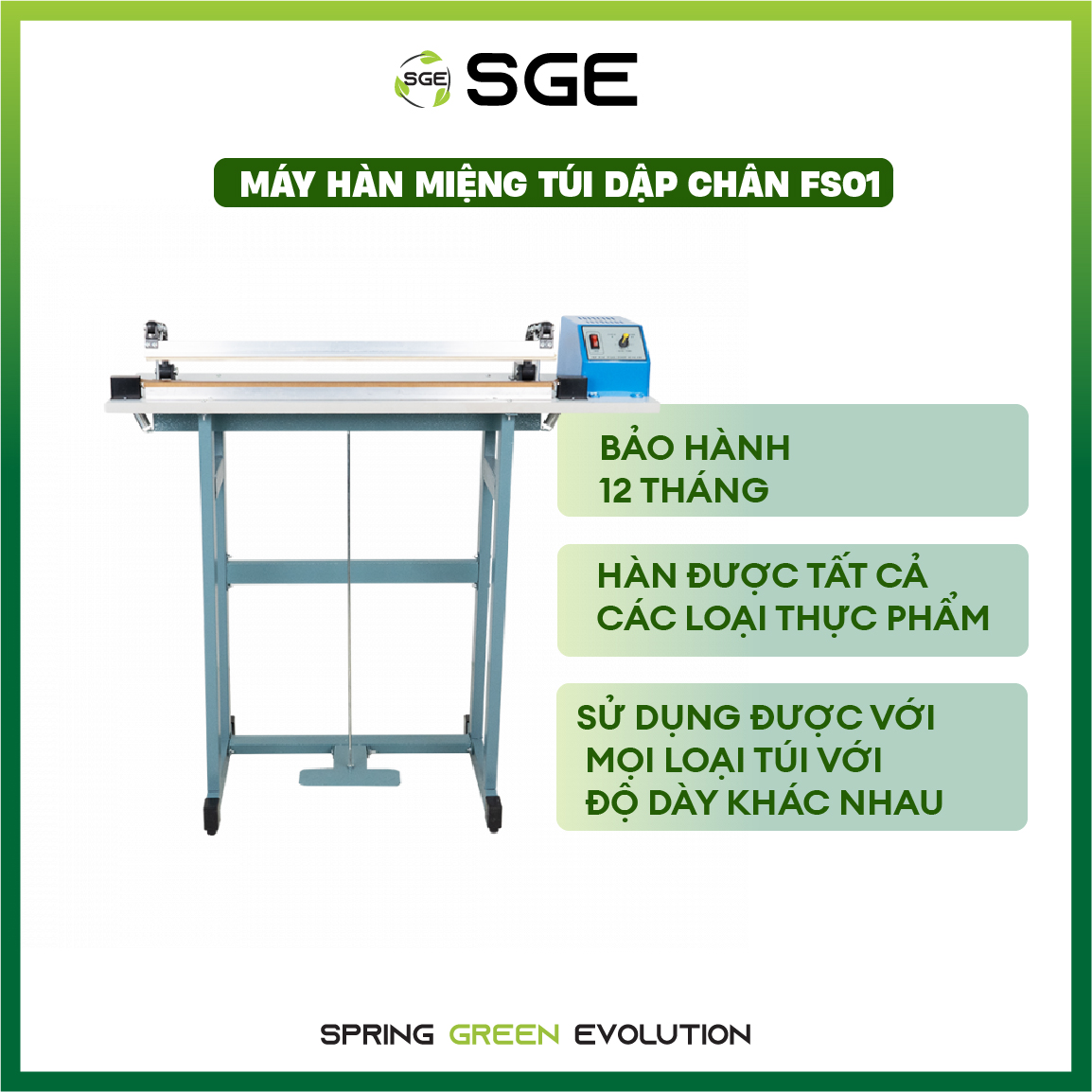 Máy Hàn Miệng Túi Dập Chân FS01 (thanh hàn đơn). Hàn Mọi Loại Túi Tốc Độ Hàn Nhanh. Hàng NK SGE Thai
