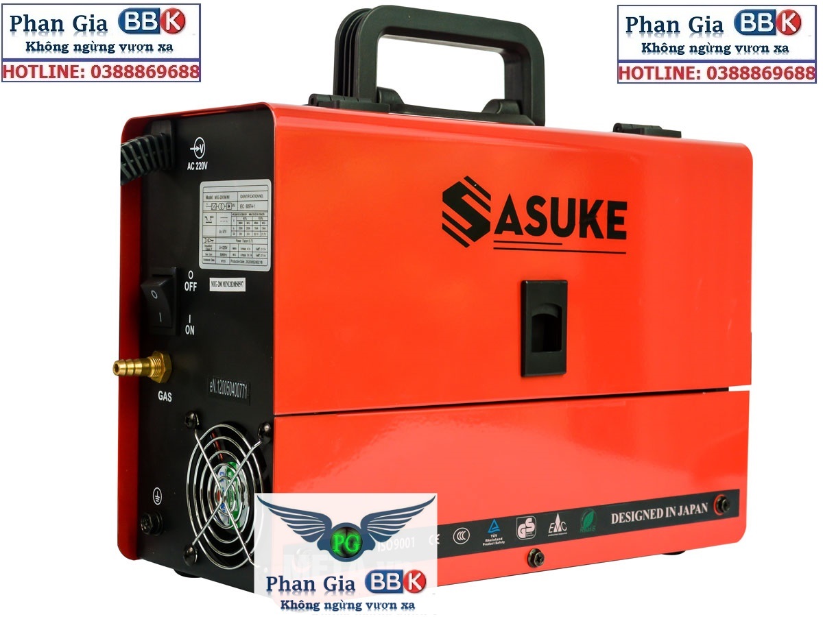 Máy hàn Sasuke Mig 250A sử dụng que hàn đường kính 1.6mm - 4.0mm Máy hàn mig Sasuke 250A là dòng máy hàn điện tử nhỏ gọn với trọng lượng chỉ 11.6kg giúp xách tay di chuyển khi