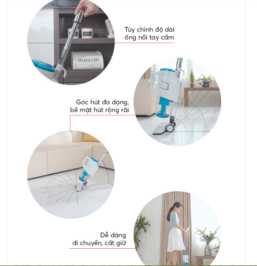 - Thiết kế với 3 loại đầu hút khác nhau với tính năng thổi linh hoạt