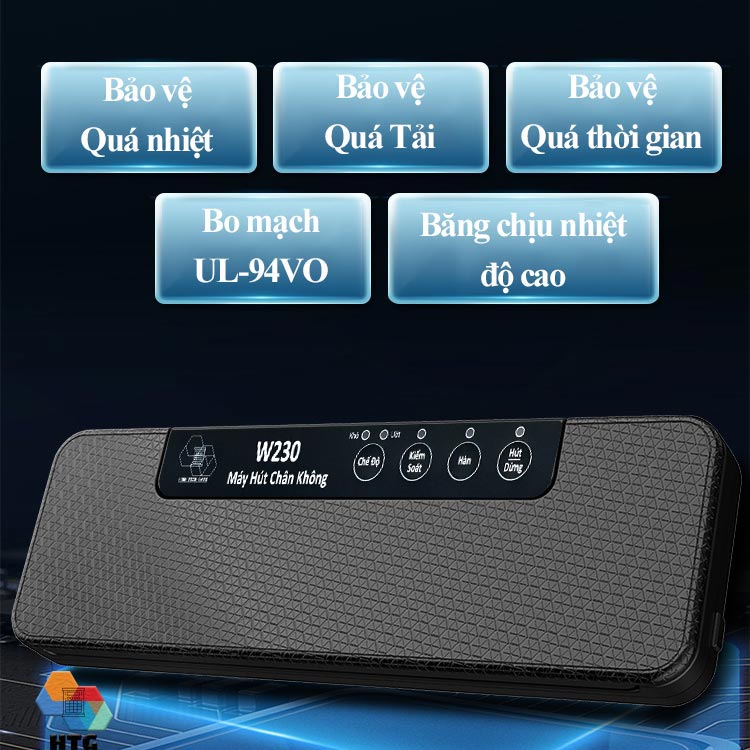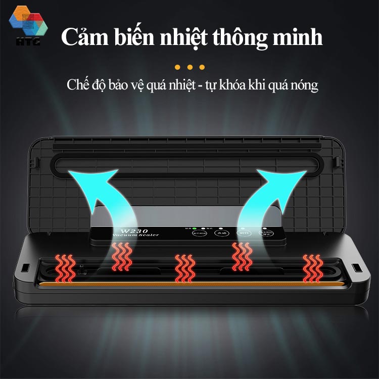 Tích hợp cảm biến nhiệt dưới dây hàn, và hệ thống làm mát trong buồng Máy hút chân không thực phẩm W230 tự khóa khi sử dụng quá liều cũng như việc hoạt động dây hàn liên tục được làm mát tốt hơn, giúp cho tuổi thọ máy được đánh giá là cao hơn so với các dòng máy mini nhỏ