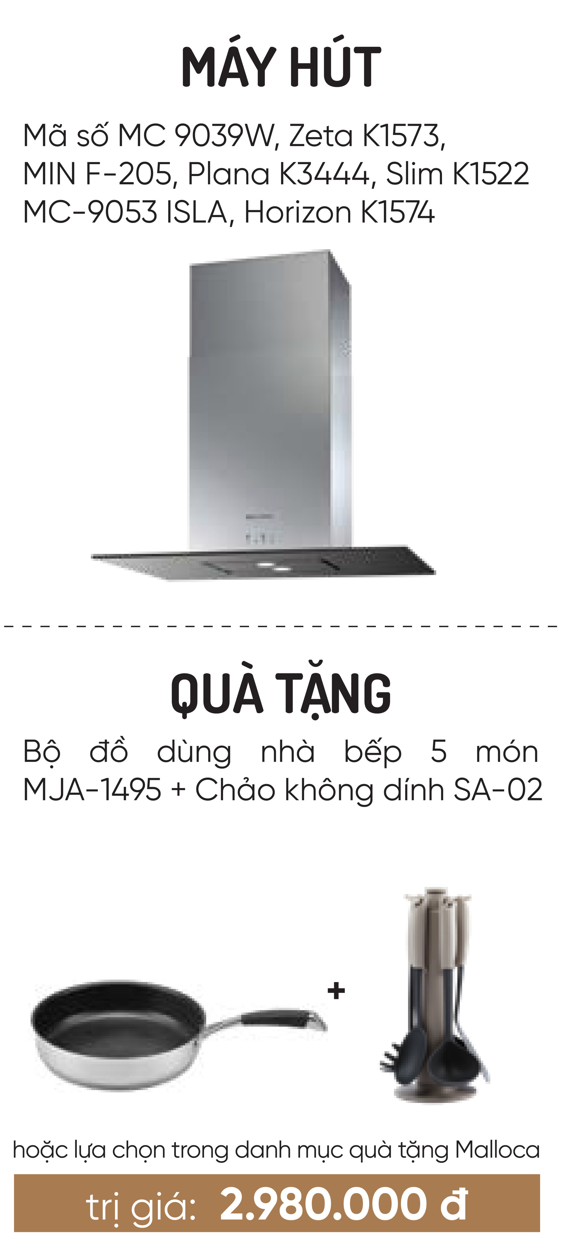 ✨Máy hút khử mùi áp tường MC 9039W - Bộ đồ dùng nhà bếp 5 món MJA-1495 + Chảo không dính SA-02 - Hàng chính hãng