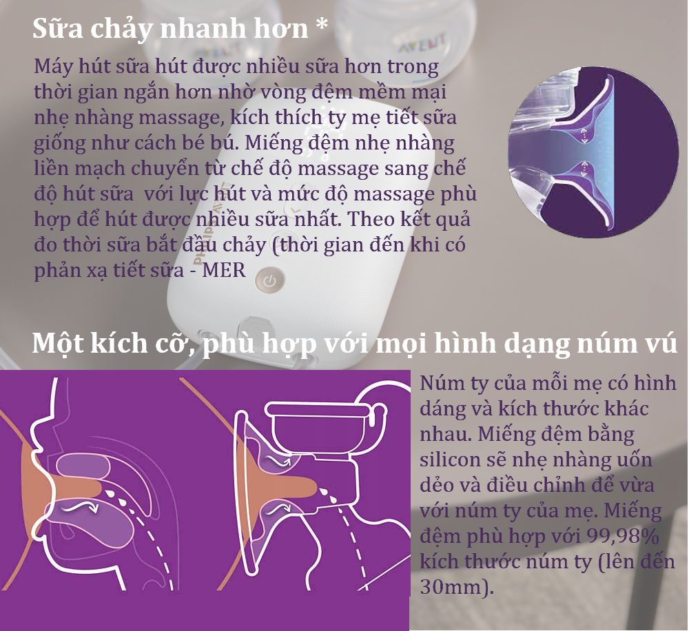 • Công nghệ chuyển động tự nhiên giúp hút sữa nhanh hơn, nhiều hơn, trong thời gian ngắn hơn*