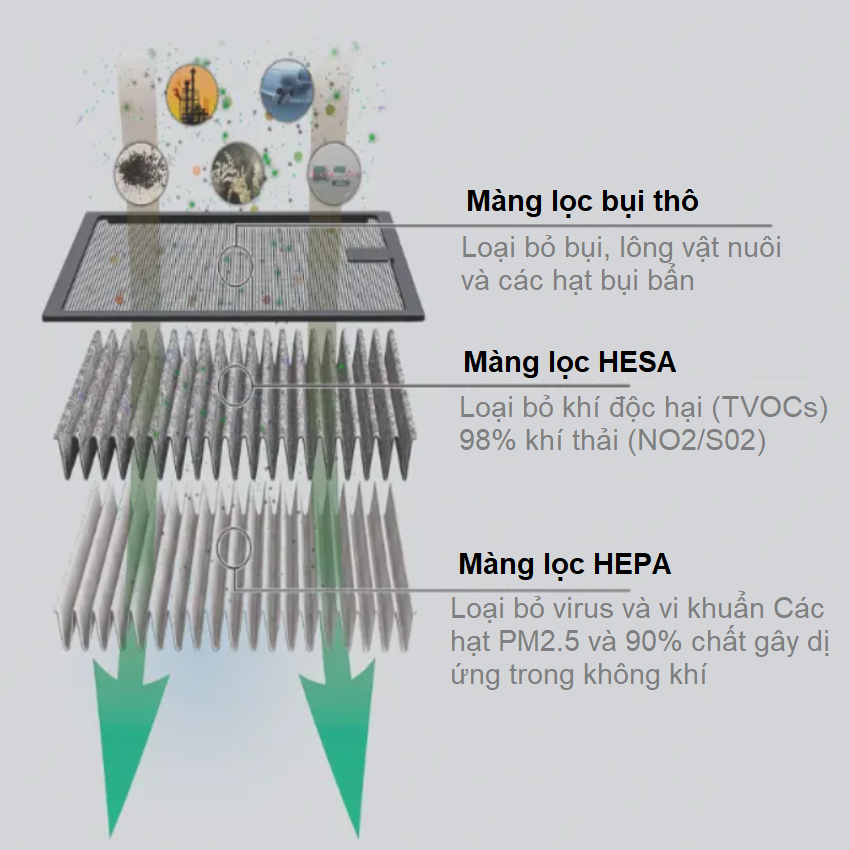 - Loại bỏ hiệu quả hơn 99% vi khuẩn trong không khí