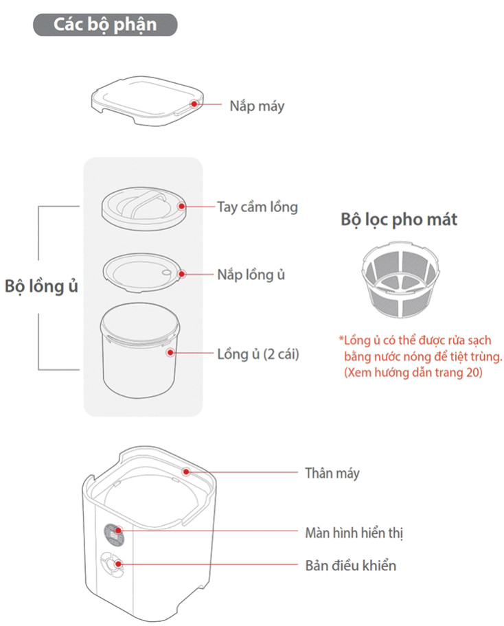 Có sách hướng dẫn công thức làm các loại sữa chua, pho mát, sirô, dấm, dưa muối, rượu trái cây…., lưới lọc pho mát và lồng ủ thay thế tặng thêm kèm theo sản phẩm