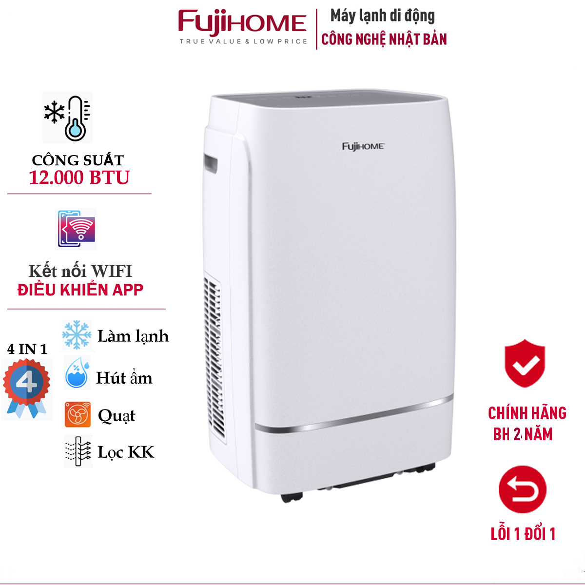 ✨Máy lạnh di động 12.000 BTU FUJIHOME PAC12, máy lạnh đứng di động mini kết nối Wifi điều khiển qua App, 4 chức năng, làm lanh, hút ẩm, lọc không khí, quạt - Hàng chính hãng