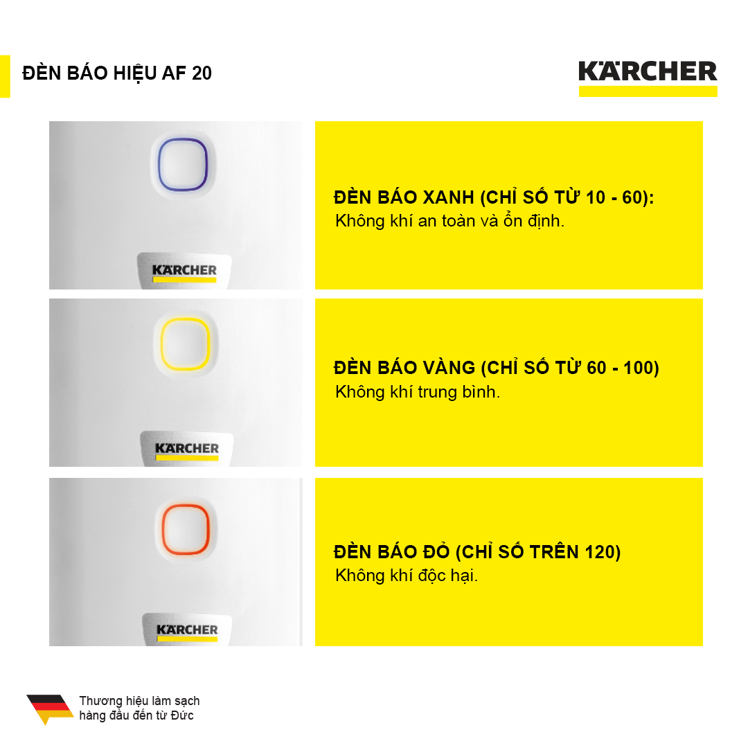 - Máy lọc không khí AF 20 có chế độ bảo hành chính hãng 12 tháng. GIẢI PHÁP LÀM SẠCH TỪ KARCHER