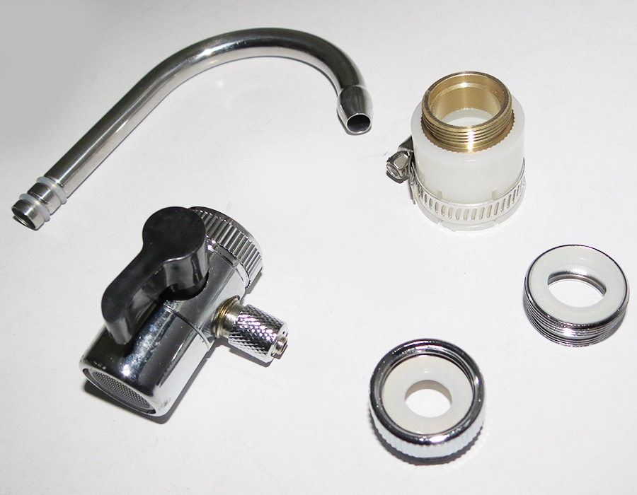 - Khóa mở nguồn nước được thiết kế với tay gạt, lấy nước trực tiếp từ đầu vòi. Van kết hợp cùng đầu vòi rửa chén và vẫn có thể sử dụng song song một cách bình thường