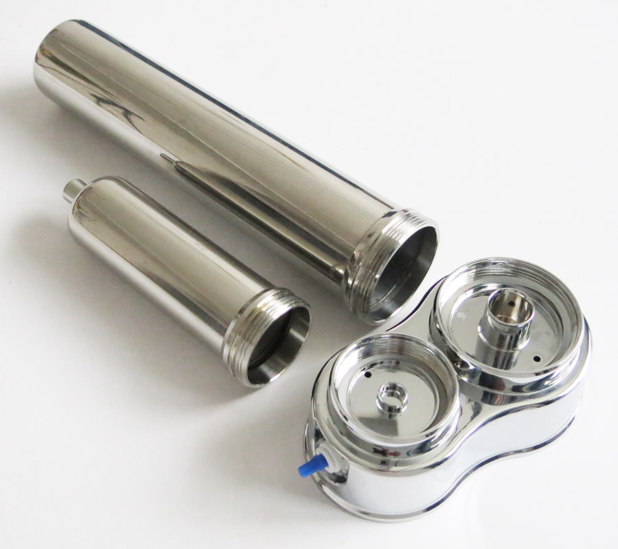 - Thân máy và vỏ chưa lõi lọc được làm từ Inox SUS 304 nguyên chất, sáng bóng sang trọng.
