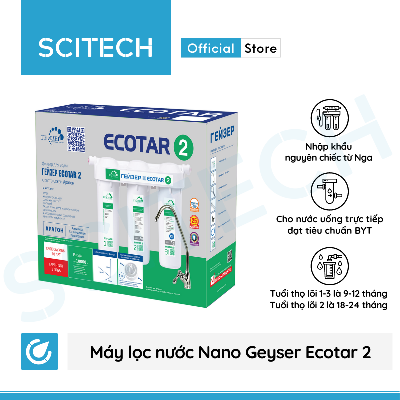 Thương hiệu: Nano Geyser Thời gian thay thế : LÕI 1 VÀ LÕI 2 LÀ 6 THÁNG, LÕI 3 LÀ 24 THÁNG Công nghệ: Nano Geyser Lõi PP.2IN1.GAC : Bông xốp PP có chức năng: Ngăn chặn bụi