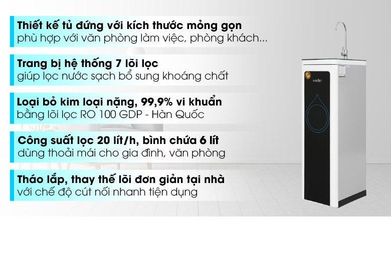 Trang bị 7 lõi lọc, màng lọc RO xuất xứ Hàn Quốc cho nguồn nước sau lọc sạch trong, tinh khiết, tốt cho sức khỏe