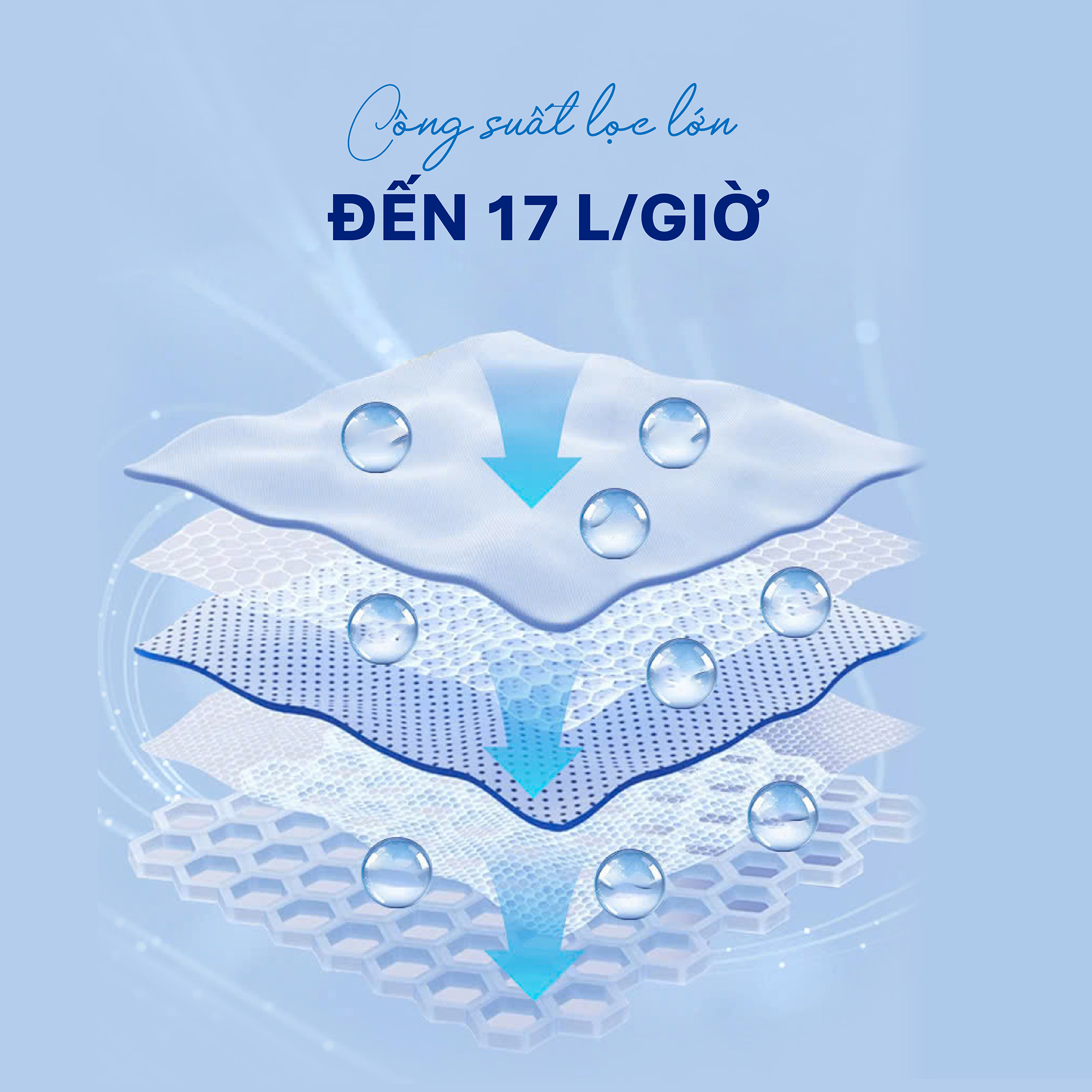 - Công suất lọc: 17 lit/giờ (phụ thuộc nguồn nước đầu vào)