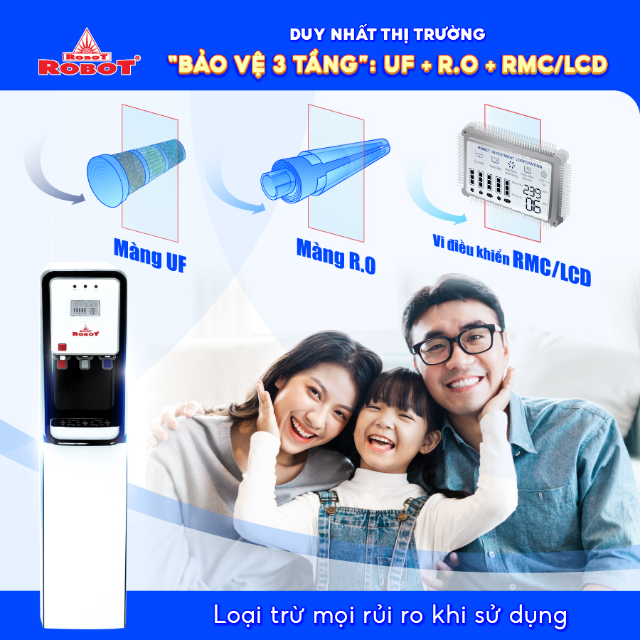 - Máy lọc nước “Bảo vệ 3 tầng” UF + RO - RMC/LCD duy nhất thị trường
