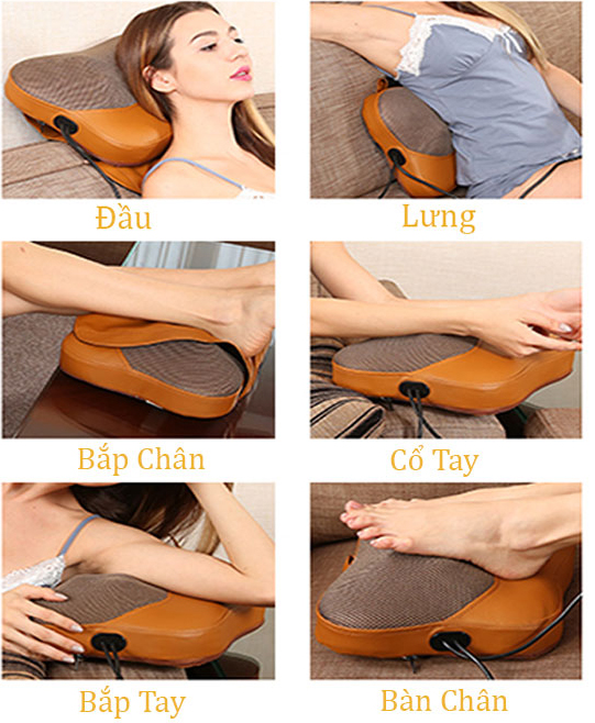 gối massage -Máy mát xa cổ có thể mát xa vùng cổ, vai gáy nhưng cũng có thể mát xa vùng thắt lưng, eo chí chí máy mát xa cổ nhưng cũng có thể mát
