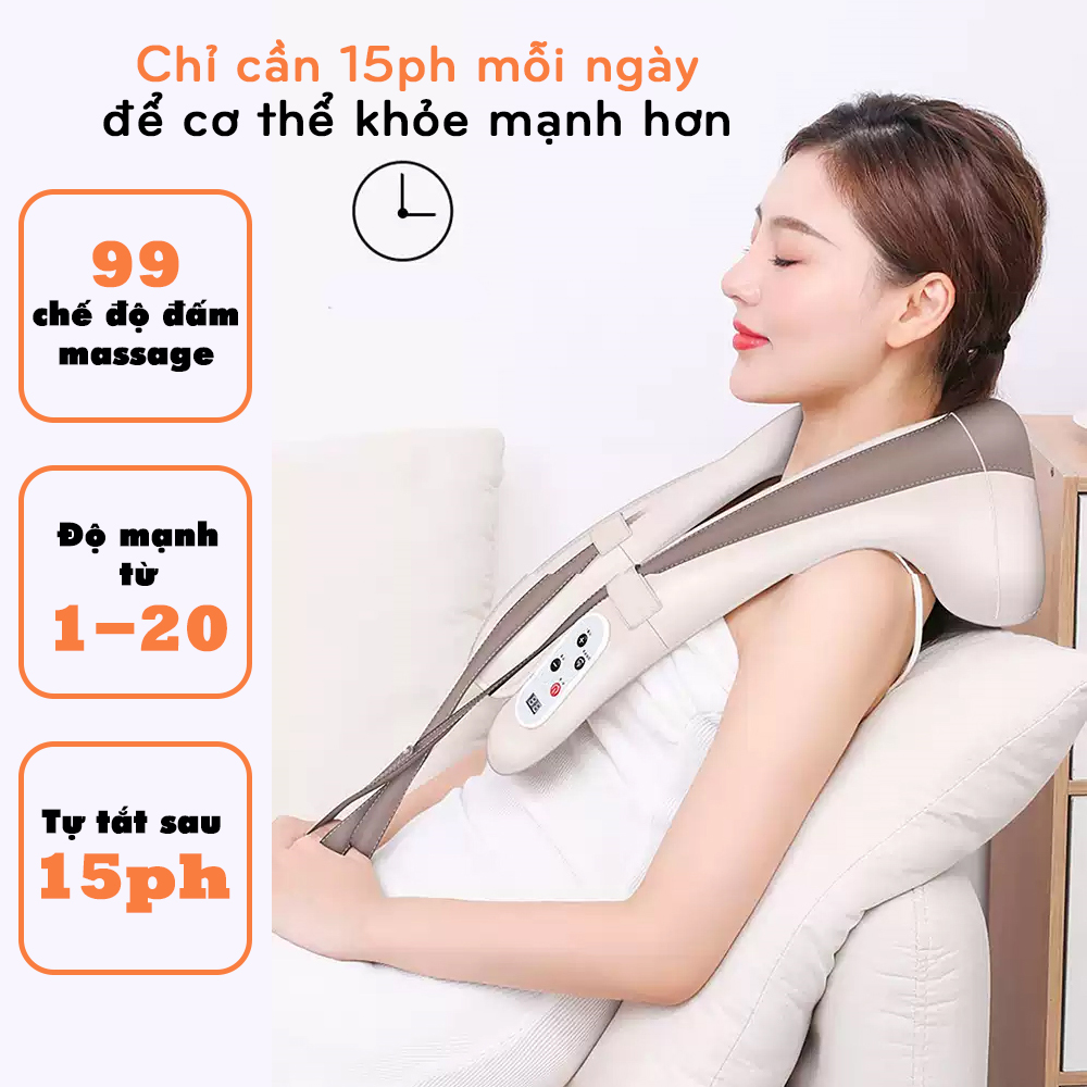Máy Massage Cổ Vai Gáy M3 Pro Nâng Cấp Mới TÍNH NĂNG ĐẶC BIỆT CỦA SẢN PHẨM: KHÔNG GIỚI HẠN HOẠT ĐỘNG: Nâng cấp dây đeo vai kết hợp tay kéo dễ dàng