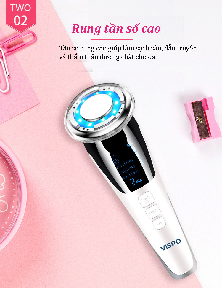 Mua tại TiktokMáy Massage Mặt Làm Đẹp VISPO VP-CM23 Khi cơ thể mệt mỏi, căng thẳng cần được thư giản nghỉ ngơi để lấy lại sức khỏe thì làn da của bạn cũng vậy. Làn da của chúng ta hàng ngày phải tiếp xúc với rất nhiều bụi bẩn, bức xạ từ mặt trời, máy tính hay điện thoại nên cũng cần được chăm sóc cẩn thận. Thường ngày chúng ta chỉ chăm sóc bằng cách vệ sinh mặt, sử dụng mỹ phẩm, serum để chăm sóc da thông thường. Nhưng để đạt được hiệu quả tối ưu khi sử dụng những sản phẩm này thì bạn nên tham khảo Máy massage mặt VP-CM23 của VISPO nhé. Đặc điểm nổi bật: Máy Massage Mặt