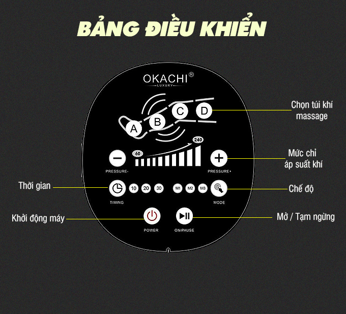 • Máy nén ép trị liệu suy giãn tĩnh mạch OKACHI LUXURY JP-2000 với công suất 30W chắc chắn sẽ mang lại hiệu quả một cách nhanh chóng, phương pháp điều trị tạo ra lực massage tác động sâu xóa tan mọi căng thẳng, giảm stress, nhức mỏi, tê bì,