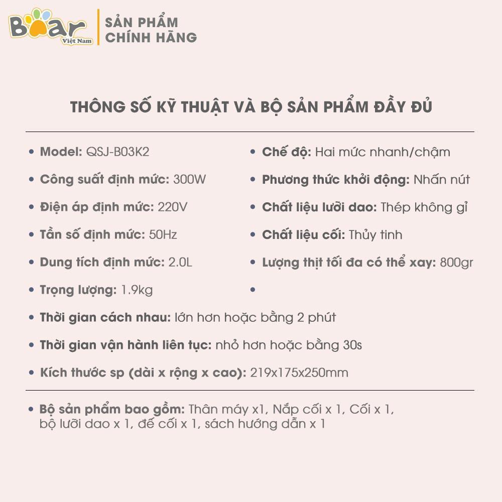 - Thích hợp cho người mới làm bánh, yêu làm bánh; phù hợp sử dụng cho gia đình nhỏ Thông số kỹ thuật Hãng: Bear Model: DM-B05V1 (HMJ-A50B1) Dung tích: 5 Lít Công suất: 200W Điện áp: 220V ~ 50Hz Chất liệu: ABS, Inox 304, Hợp kim nhôm Kích thước: 296×262×293mm Công dụng Trộn và ủ bột tự động Trộn bột đa góc, tạo nên khối bột đều, đạt tới độ mềm dẻo đúng kỹ thuật trong 15 phút Ủ bột tự động giúp thớ bột dai, kéo màng đạt chuẩn Hướng dẫn sử dụng Bạn dễ dàng sử dụng máy tộn bột 5L Bear chỉ với 5 thao tác dưới đây: