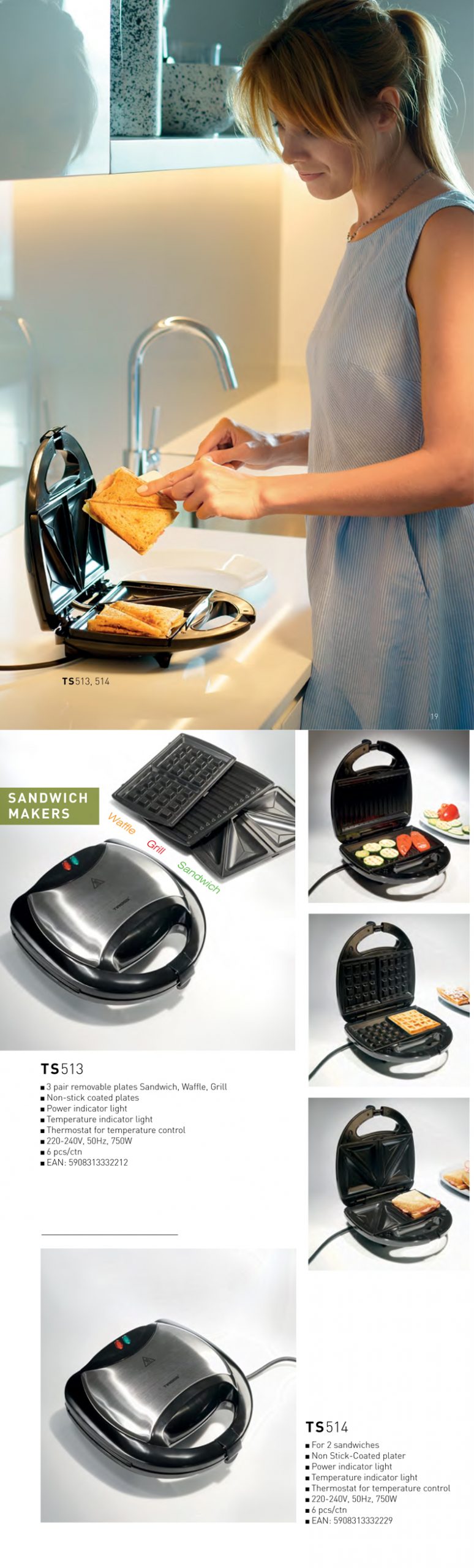 Thiết kế hiện đại, nhỏ gọn Kẹp nướng Sandwich Tiross TS9655 là một sản phẩm hữu ích, mang đến cho gia đình những chiếc bánh nướng thơm ngon phục vụ bữa sáng đủ chất. Sản phẩm có thiết