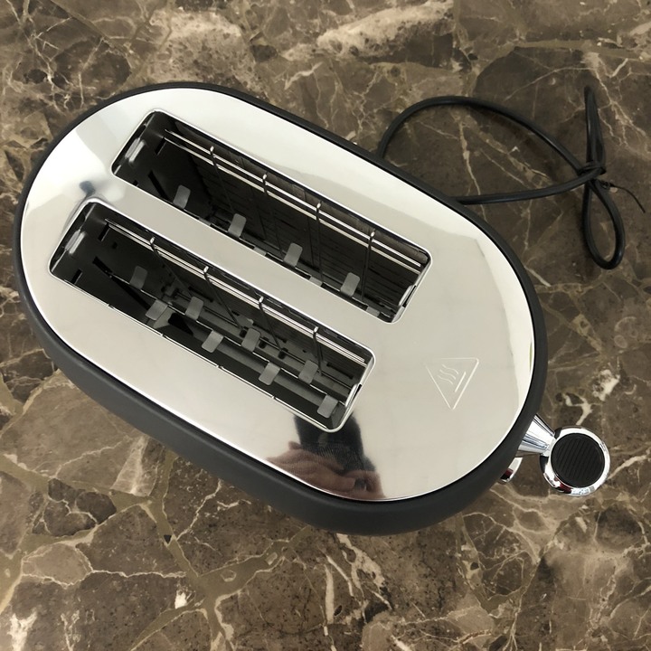 Công suất 900W cùng 8 mức điều chỉnh nhiệt độ nướng khác nhau Chất liệu thép không gỉ và nhựa, an toàn với thực phẩm không chứa BPA cùng 2 khe nướng Định tâm tự
