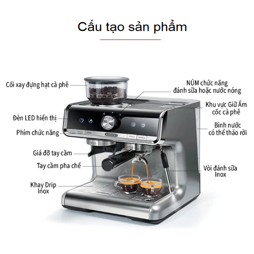 Máy pha cà phê Espresso chuyên nghiệp 3 trong 1 HiBREW H7B