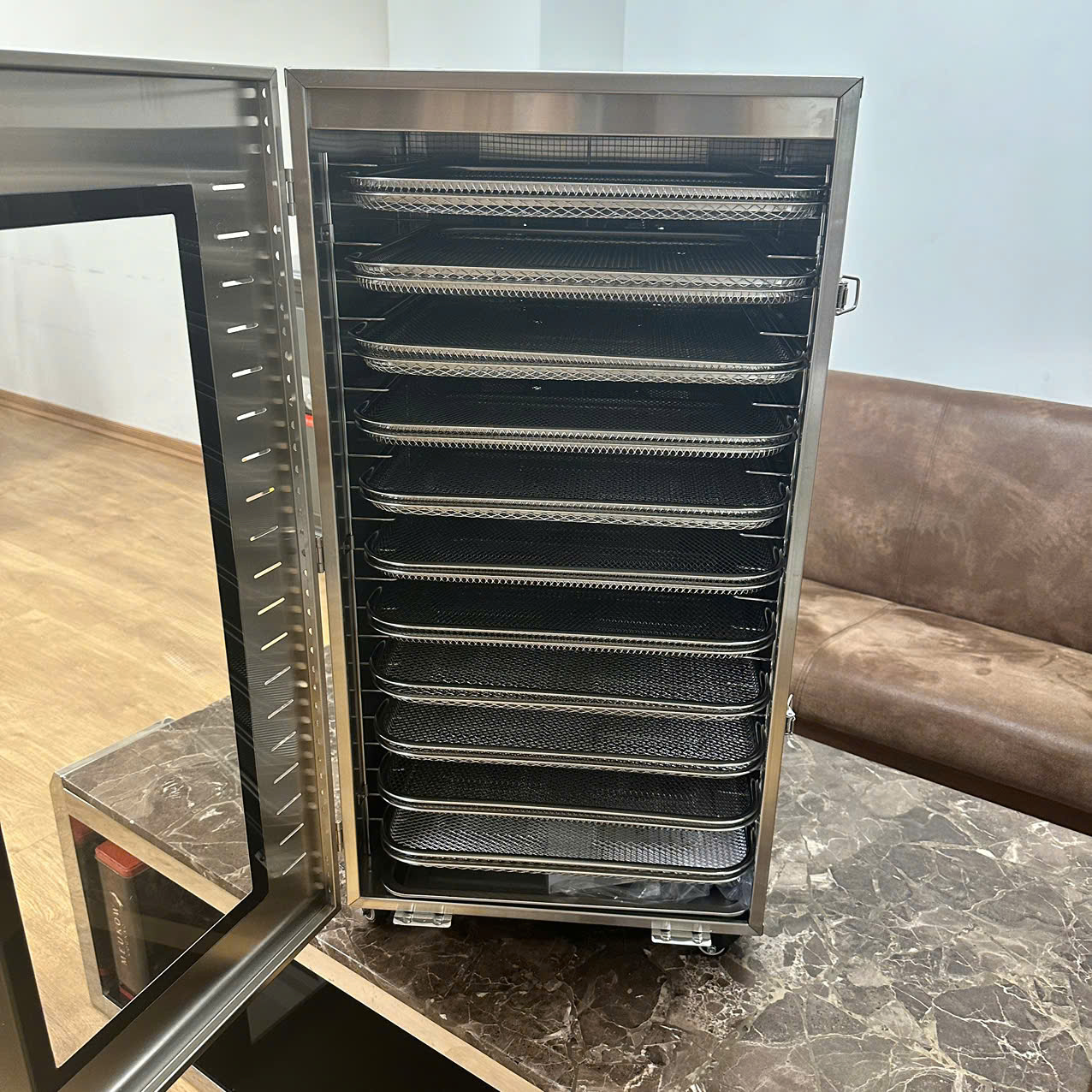 - Thiết kế kính cường lực toàn cửa, quan sát thực phẩm sấy dễ dàng.