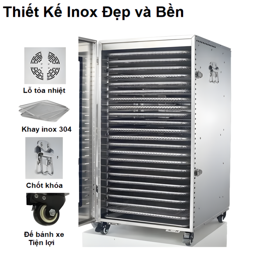 - Hệ thống nhiệt: Xoay vòng tự động 360 độ quanh đều 16 khay