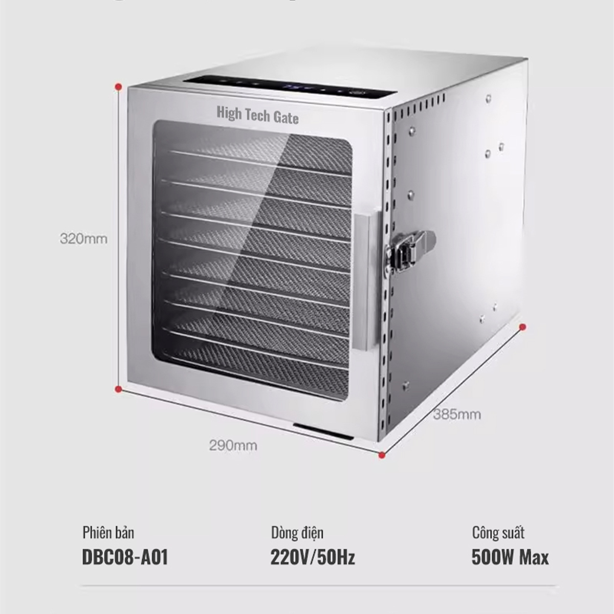 ✨Máy Sấy Thực Phẩm Inox HTG 8 khay DBC08-A01 Sấy Khô Hoa Quả, Thịt, Đồ Ăn, Tia UV Khử Khuẩn, Hẹn Giờ, Hàng Chính Hãng