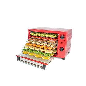Máy sấy rau củ quả được thiết kế để sấy khô trái cây, rau củ, nấm, thảo mộc, thịt và các sản phẩm khác trong căn hộ, nhà riêng, quán cà phê và nhà hàng. Mô hình được trang bị bảng điều khiển cơ và 4 chân. Thân và khay sấy làm bằng kim loại, cửa tủ làm bằng kính cường lực.