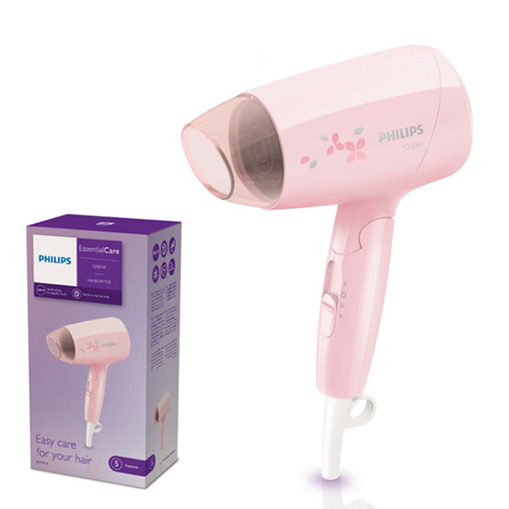 Máy sấy tóc Philips có công suất lớn 1200W Máy sấy tóc Philips BHC010/00 sở hữu thiết kế màu hồng xinh xắn, kiểu dáng nhỏ gọn, dễ sử dụng với tay cầm có thể gập lại, thuận tiện cho