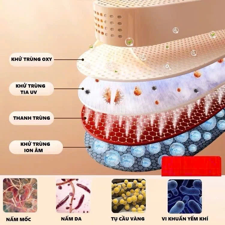Máy sấy giày đa năng khử trùng thông minh bằng tia cực tím khử mùi giày tất găng tay Tính năng nổi bật. - Thiết kế không khí nóng 3 chiều 360 làm cho khô