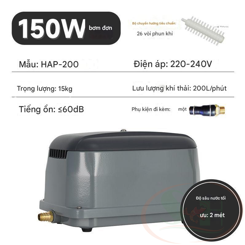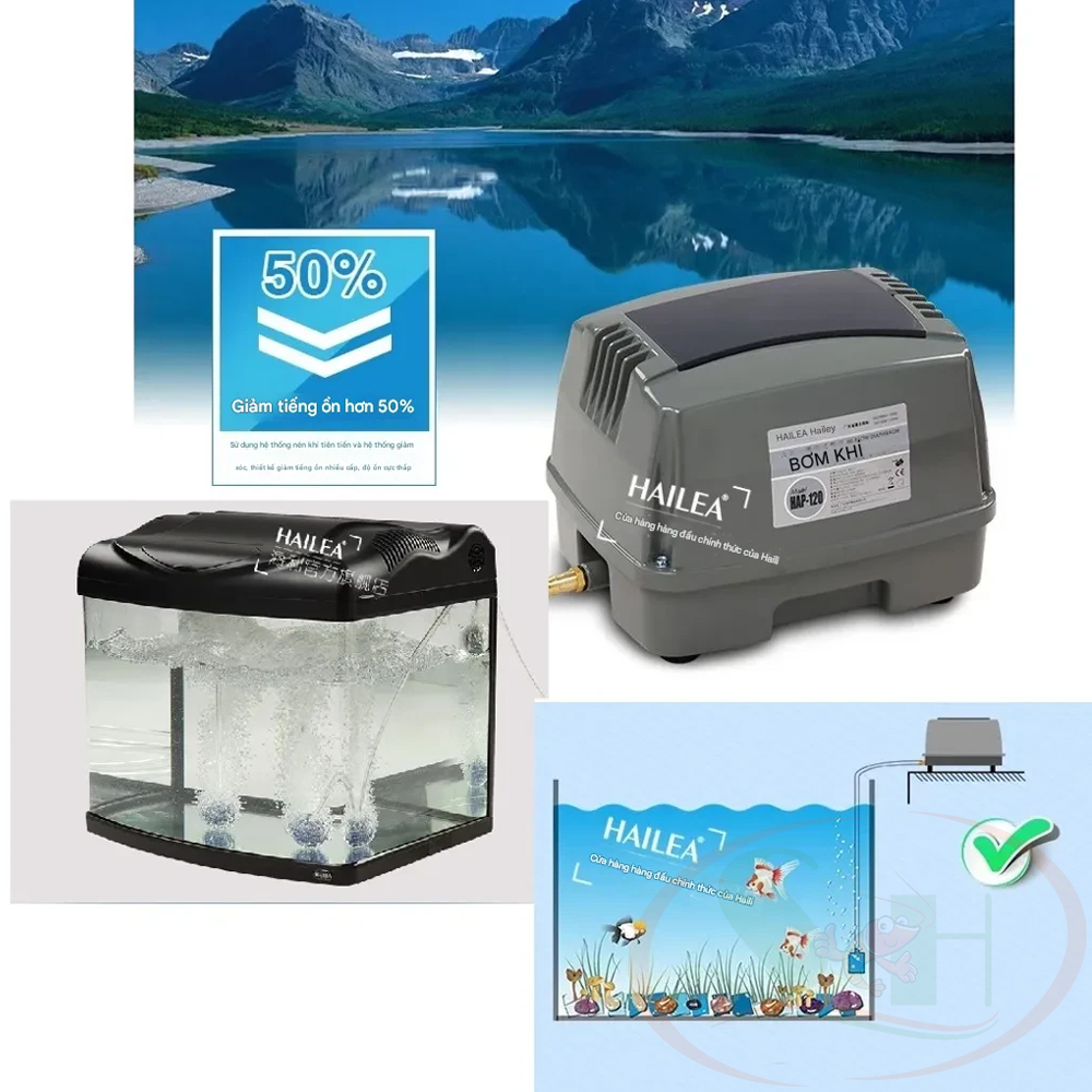 Hailea HAP series sử dụng vỏ hợp kim nhôm định hình cao cấp, hệ thống giảm chấn kép và chức năng hấp thụ rung, độ ồn rất thấp nên hoạt động yên tĩnh. Buồng khí kép tạo ra lượng khí có áp suất đẩy mạnh.