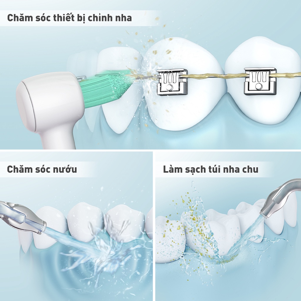 - Chăm sóc 2 trong 1 với Đầu phun tia nước & Bàn chải kẽ