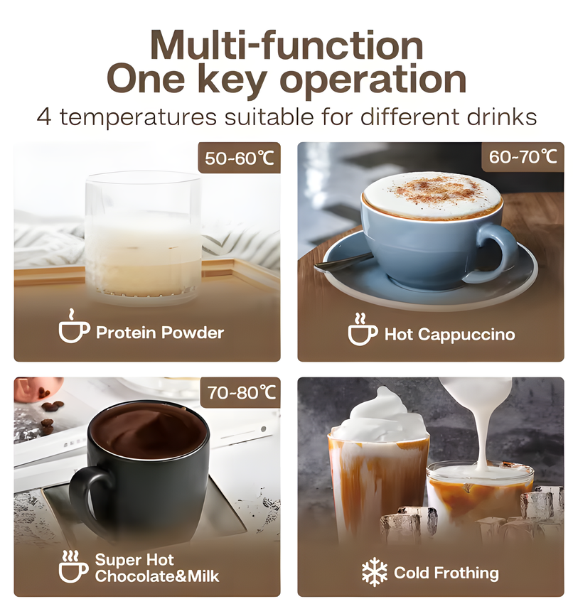 Máy Đánh Bọt Sữa Tự Động 4 Trong 1 (Nóng & Lạnh) cho Latte, Cappuccino, Socola Nóng