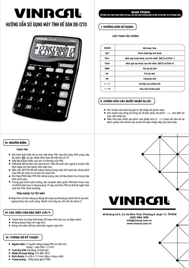 Chức năng nổi trội: Tính tỷ lệ phần trăm, thiết lập tính thuế, gọi lại bộ nhớ, cộng bộ nhớ, trừ bộ nhớ
